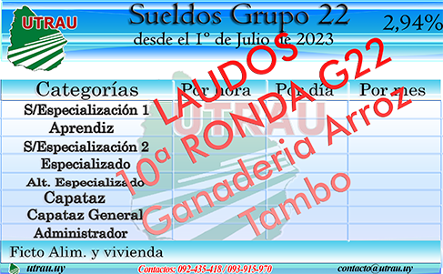 El día lunes 6 de noviembre los Compañeros/as Dirigentes representante de los Trabajadores del Grupo 22 (Ganadería, Secano, Arroz y Tambo) no llegaron a un acuerdo con los Representantes de las Patronales, lo cual motivo ir a votación con las pautas que propuso el Ministerio en la misma los Representantes de los Empleadores y el Ministerio votaron afirmativamente a la propuestas y los Representantes de los Trabajadores en contra.