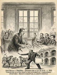 1. En la Estancia: El Capataz era el juez y el ejecutor. Si un peón se "contagiaba" de las ideas de Batlle, el capataz aplicaba la "disciplina".2. En el Parlamento: Los Patrones (ahora vestidos de legisladores) redactaban las leyes con "trampas". Son ellos quienes lograron que, aunque la ley de 1915 dijera "Obreros de Tierra", el campo quedara excluido en la práctica por casi un siglo convirtiéndola en letra muerta.