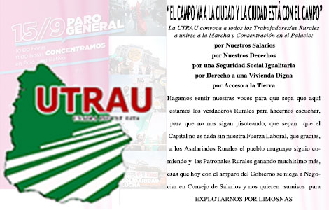 El día 7 de setiembre la UTRAU viajo a Montevideo con el fin de tener varias reuniones para buscar soluciones a los trabajadores rurales, una de estas reuniones fue con el